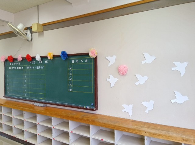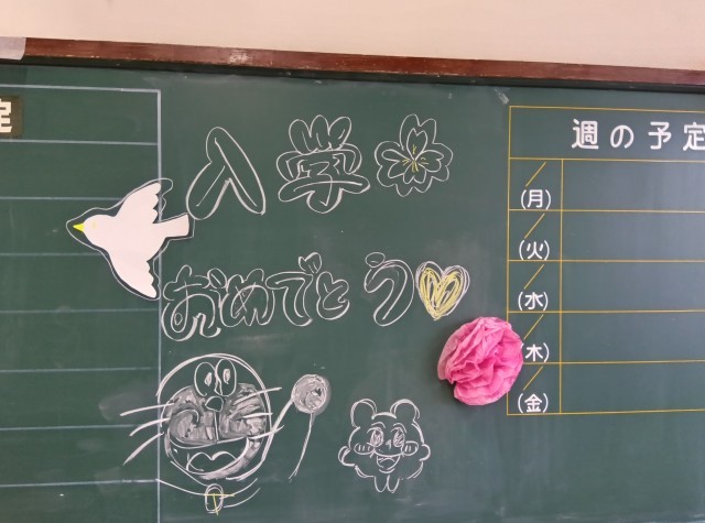 4月6日、着任式、始業式が終わり、2、3年生で、入学式の準備をしました。1年生を迎える準備ができました。