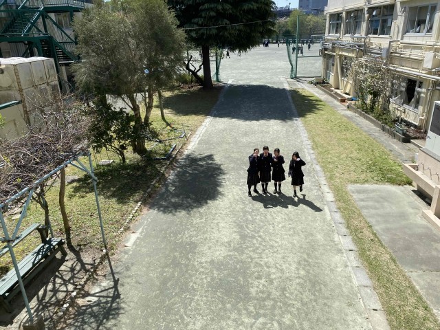 天気が良いので、校庭に出ている人が多いようです。