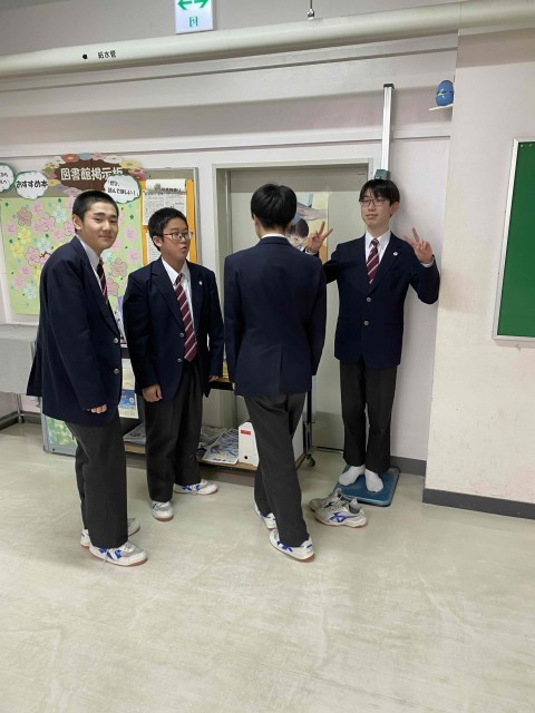 校内ではおしゃべりしたり、身長を計ったり。