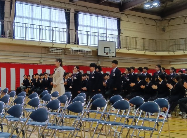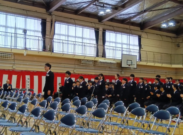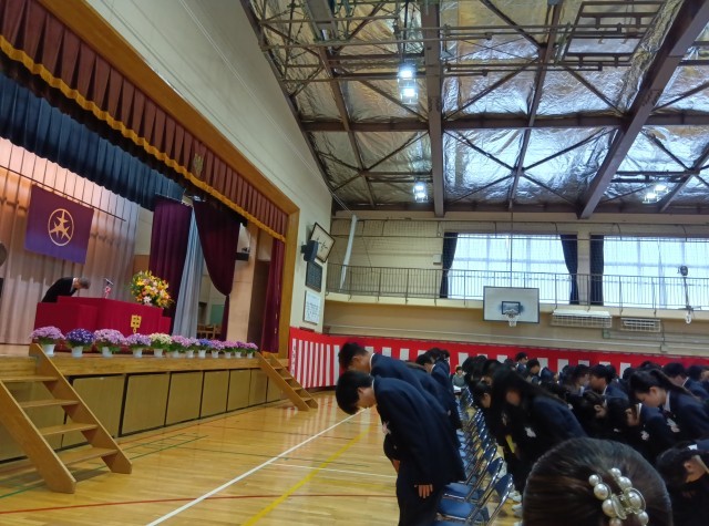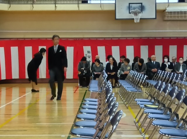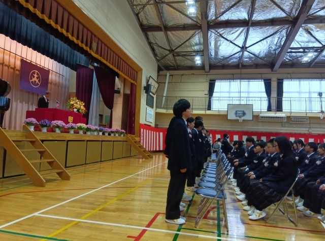 新入生呼名も校長先生に向かって、名前を呼ばれて「はい!」という大きな返事は、中学校生活に向けて頑張ろうという決意が伝わってきます。