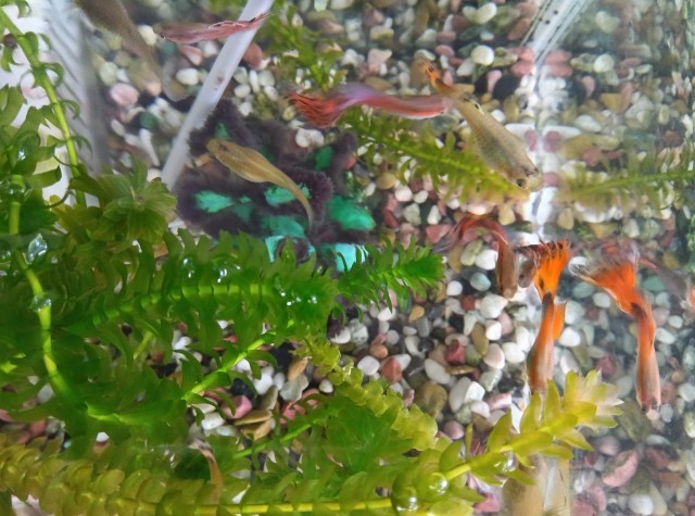 教室に入った時は先生の自己紹介中だったようで…謎の盛り上がりでしたが(写真は自粛笑)、その後昨年度の地理分野のおさらいをしていました。グッピーに癒されます。