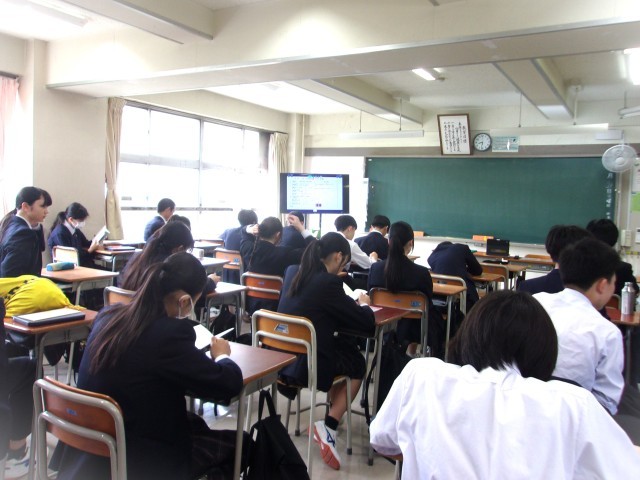 教室の様子は、静かに読書モード。1時間目の授業にしっかり取り組めるように心を整えています。静か~な廊下を音をたてないように通り過ぎて写真を撮らせていただきました。