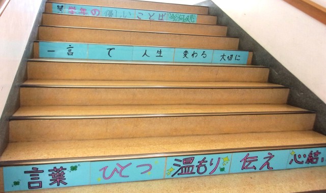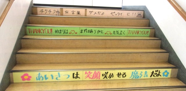 さて、始業式で校長先生がお話されていた階段にある素敵な言葉たち。昨日、生徒会長さんからもお話がありましたが、『挨拶』って素晴らしいですよね。駒留中学校はさわやかな挨拶をできる生徒たちが多い素敵な学校です。