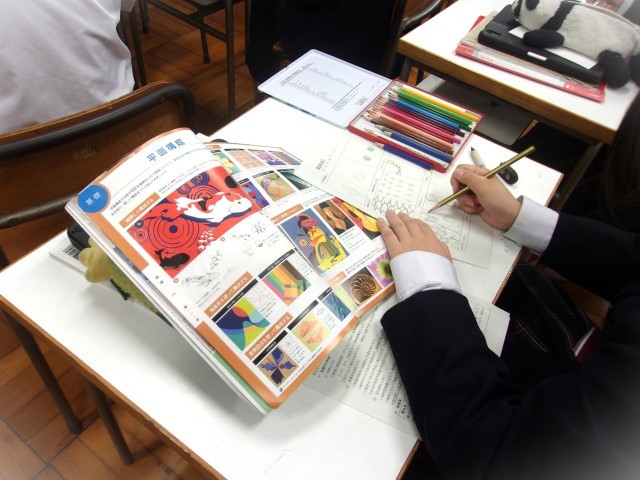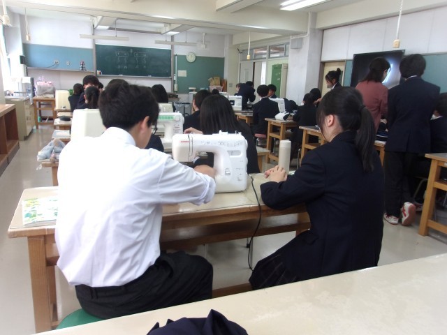 5時間目の授業、美術では「構成美を探る」というテーマで2年生が様々な“構成”にチャレンジしていました。また、ほかのクラスでは、ミシンを前にあっという間に糸を付けられた人ととても困っている人と様々でした。つかったことのない「マシン」って難しいですよね。最近は、とみにそう感じます。