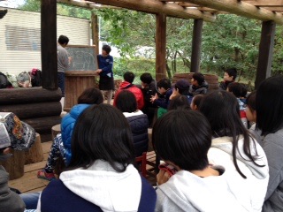 各クラスに分かれて農場で酪農体験です。牛について勉強しています。