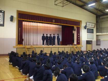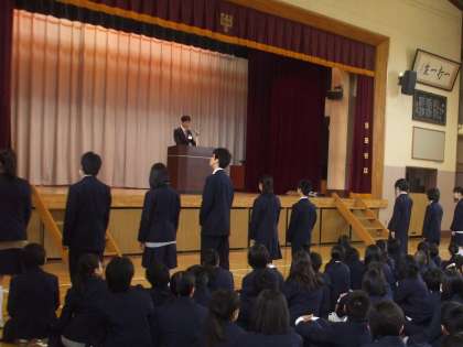 生徒会朝礼で、27年度前期専門委員会の任命式を行い、校長先生から、7委員会110名が任命されました。駒留中学校が、しっかりと学習に取り組めて、明るく楽しい学校になるように頑張ってください。