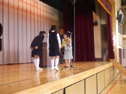 本日の離任式に、中村前校長先生(用賀中校長)と大倉前副校長先生(奥沢中校長)