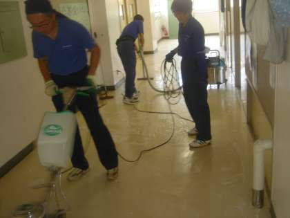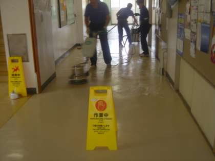 試験中の午後を利用して、(株)ソシオの方が、ワックス清掃をしました。