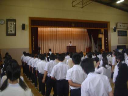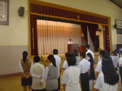 生徒朝礼で、生徒会からの連絡、各学年の学級委員会からの報告がありました。「残り少ない1学期です。学習面・生活面を整えましょう・・・・」との、内容でした。