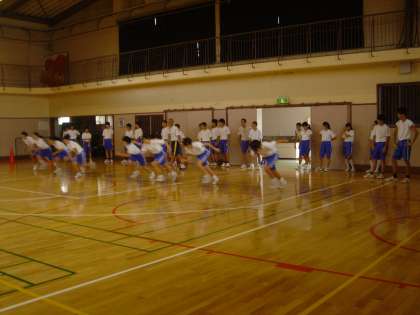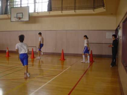 10/1の世田谷区中学校陸上大会に向けての朝練習が始まりました。代表の選手は、雨天のため、体育館でそれぞれの種目に向けての練習をしました。