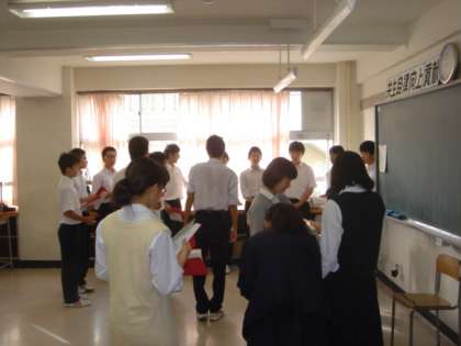 いよいよ朝練習が始まりました。パートごとに、声を合わせています。朝から、歌声の響く学校風景です。