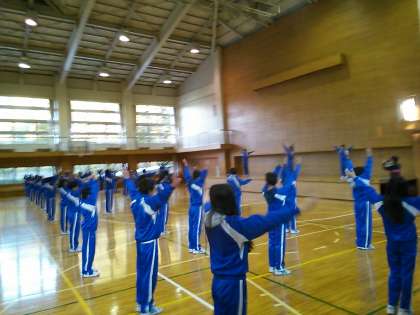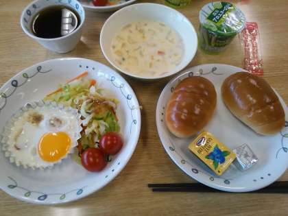 今日も快晴!朝礼後、元気に朝食を食べました。