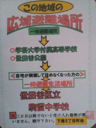 避難所の開設にむけた検討をしました。駒留中の避難所は、大震災後、72時間をめどに開設することが目標です。72時間までは、日頃からの備えで、乗り越える必要があります。