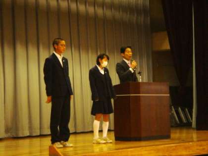 2月7日(日)に「味の素スタジアム」で実施される、区市対抗の「中学生東京駅伝大会」の世田谷区代表選手2名を激励しました。各校の代表が集まる世田谷区の予選選考会で優秀な成績で選ばれた2名の選手です。選手には、ベンチコートとユニフォームが支給されました。