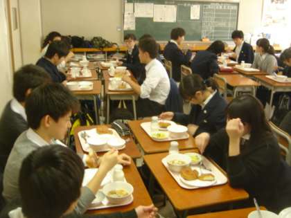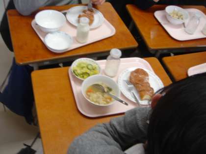 今日は、都立高校の合格発表日でした。その結果、今日までに3年生110名の進路が決定しました。よく頑張りました。お昼にはみんなで、給食のあげパンをおいしそうに食べていました。