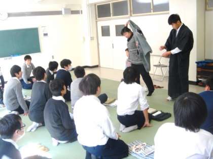 3年生が、日本の伝統文化としての、 ゆかたの着付け体験をしました。