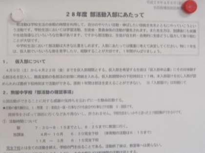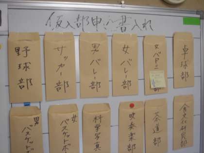 部活動の仮入部期間です。自分が考慮中の部活動に申し込み、体験します。