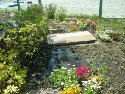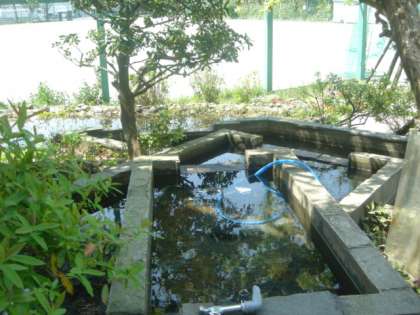 中庭の池の清掃
