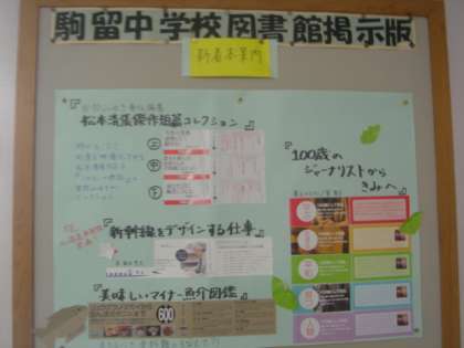 図書の掲示板で様々な新着図書の紹介をしています。