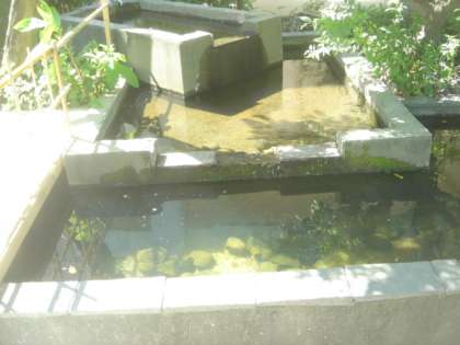 中庭の池を整備しています。きれいな、段差のある池になりました。