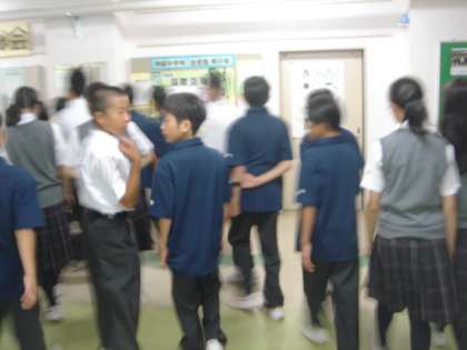 夏服、ポロシャツ、ブラウス+ベストなど、いろいろな生徒がいます。それぞれすっきりと着こなしましょう。
