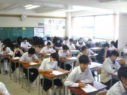 2年生全員が、5教科のテスト「生徒の学力向上を図るための調査」を実施しました。個人の力を図るとともに、授業内容の改善にもつなげます。
