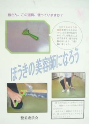 多分、学校でしか使わない「ほうき」の扱いを説明しています。