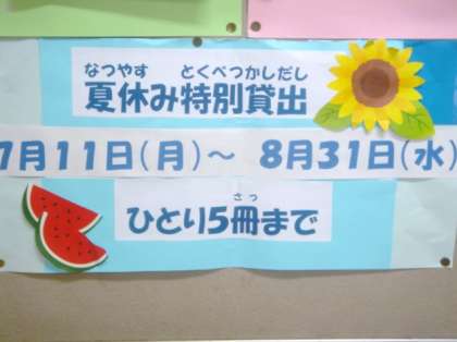 夏休みは、ひとり5冊までの特別貸し出しがあります。