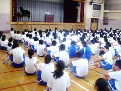 校長先生から、この夏休みで「進路を考える」「図書館の有効活用」「苦手教科の克服」の話がありました。その後、校歌斉唱、男子バスケ部の表彰、生活指導主任からの話がありました。