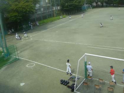 梅雨があけました。グラウンドでは、野球部が練習試合をしました。