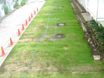 芝生を植えて一週間経ちました。今は、水やりが大切です。