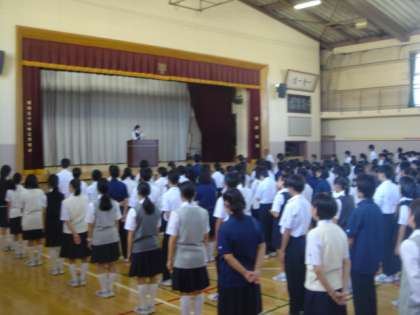 生徒会長からの話、来週のあいさつ週間の予告、生徒会選挙の公示がありました。