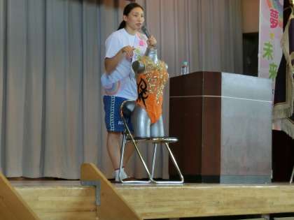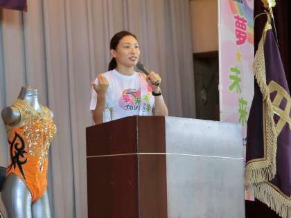 試合用の水着は、すべてお母様の手作りだそうです。お母様に、支えられ、励まされたこと、どんなときも明るくたくさんほめてもらったこと、などのお話がありました。
