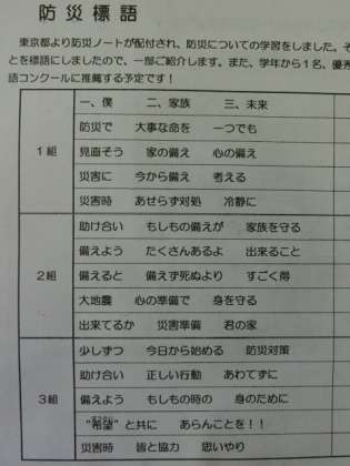 1年生が、防災標語を作りました。優秀作品を世田谷区のコンクールに推薦します。詳しくは、1学年だより「笑顔」をご覧ください。