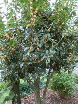 キンモクセイの花が、正門で咲いています。