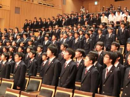 審査基準の説明後、生徒全員で校歌斉唱をしました。