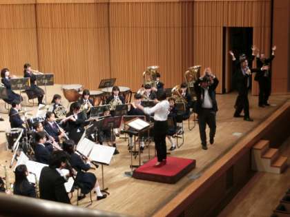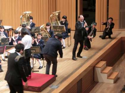 吹奏楽部の演奏で、飛び入りの教員が生徒の知らない古い歌を歌いました。