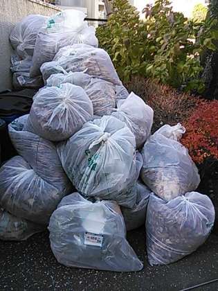 クリーン大作戦でたくさんの、落ち葉やごみが回収できました。学校のごみ回収は、本来有料ですが、PTAの担当者が、ボランティア活動の事前申請をしていただいたので、今回は無料で回収していただけます。