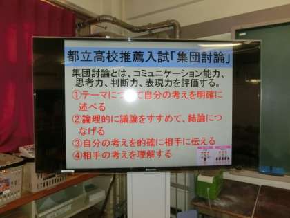校長先生が講師になり、集団討論の対策講座を実施しました。