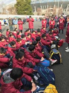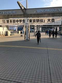 味の元スタジアムで中学生東京駅伝です。駒留中から2年生2名が世田谷代表として出場します。