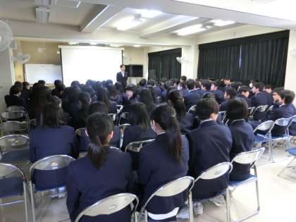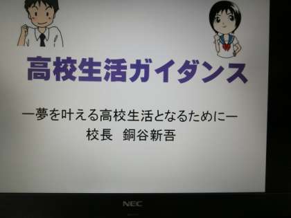 銅谷校長から3年生全員に、「高校生活ガイダンス」の講義がありました。
