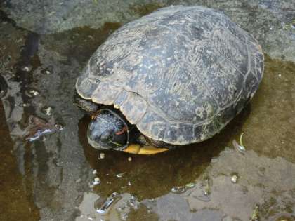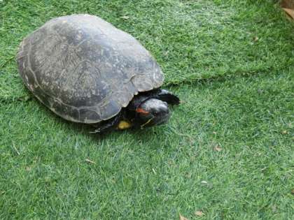 体長20センチ程のカメをいただきました。池のふちを歩いています。