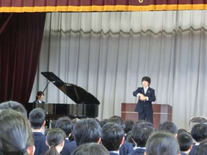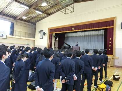 校長先生の話と校歌斉唱があり、立派な態度の始業式ができました。