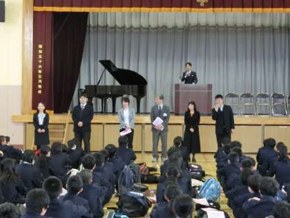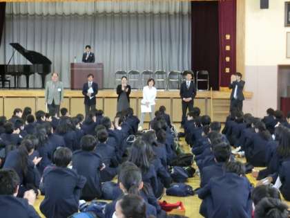 2.3年生の担任・副担任を発表しました。新しい出会いですね。1年生の担任は、明日までヒミツです。