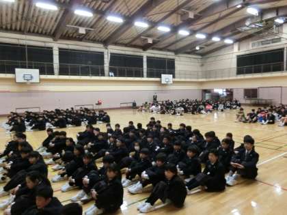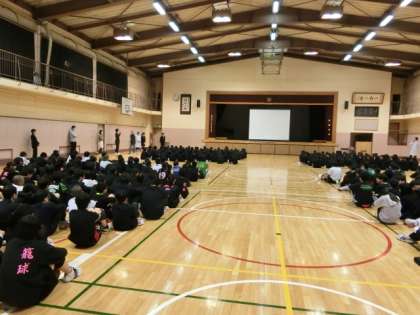 新入生の歓迎会をしました。生徒会から、歓迎の言葉と学校行事と委員会の紹介がありました。