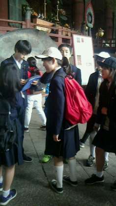 班行動開始。大仏殿で美術の課題に取り組んでます!