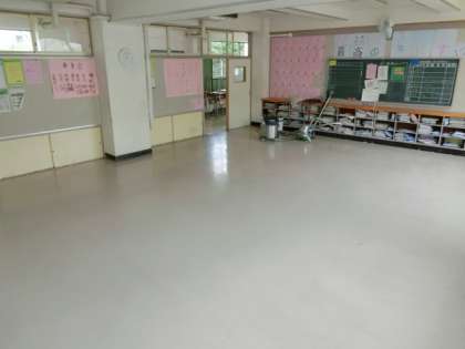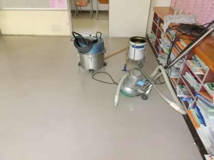 用務さんが、3年生の教室にワックスをかけてくれます。