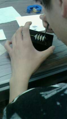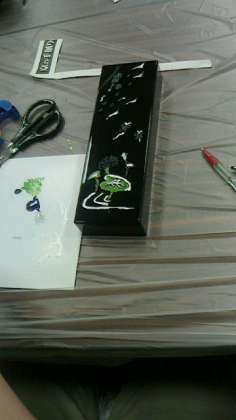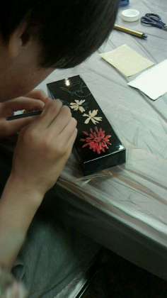 京漆器に下絵を書いて色をつけたらなかなか素敵になってきました!