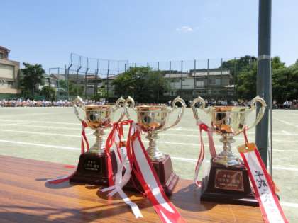 勝ち負けは、一つの結果です。それがすべてではありません。勝っておごらず、負けてひがまず、自分がベストをつくしたかが大切です。「友情」「連帯」「フェアプレー」これが出来れば、みんなが勝者です。勝って泣く生徒、負けて泣く生徒がいました。私はこんな生徒がいて、それを支える保護者や地域の方々、しっかりと指導できる教員のいる学校の校長で幸せです。