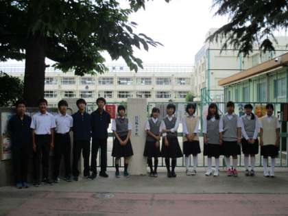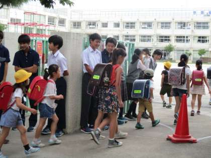 旭小学校であいさつ運動をしました。生徒会役員と生活委員が参加しました。